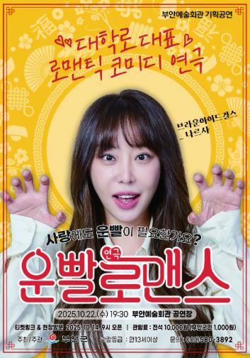 ![]() 부안예술회관, 연극 ‘운빨로맨스‘ 22일 공연 |