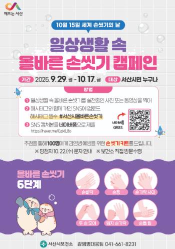 ![]() 서산시, 2025 세계 손씻기의 날 기념 주간 행사 진행 |