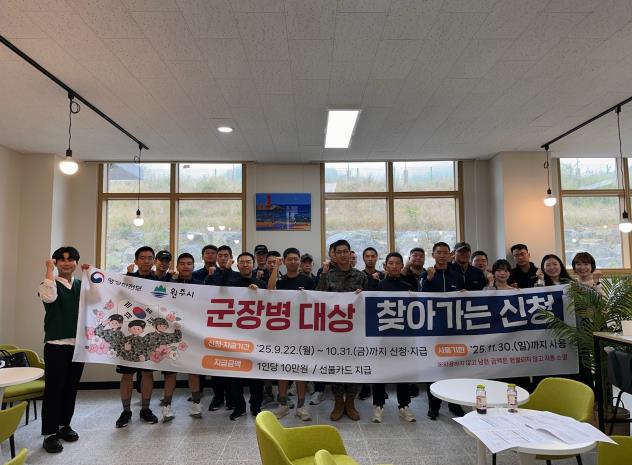 백승희 자치행정과장은 “바쁘신 와중에도 찾아가는 신청을 위해 협조하여 주신 군부대 관계자분들께 진심으로 감사드린다.”라며, “나라를 위해 열심히 군복무 중인 군 장병분들께서 선불카드의 이점을 잘 활용해서 사용하셨으면 좋겠다.”라고 전했다.