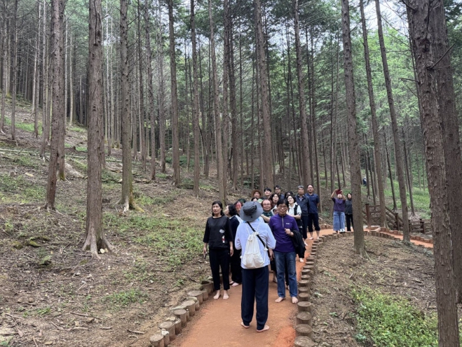 참가자들은 맨발로 부드러운 황톳길을 걸으며 피톤치드가 가득한 편백림의 맑은 공기를 느끼고, 고요한 숲속에서 마음을 다스리는 명상의 시간을 가졌다. 또한 싱잉볼과 아로마 향을 활용한 이완 프로그램을 통해 몸과 마음이 동시에 회복되는 산림치유의 진정한 의미를 체험했다.