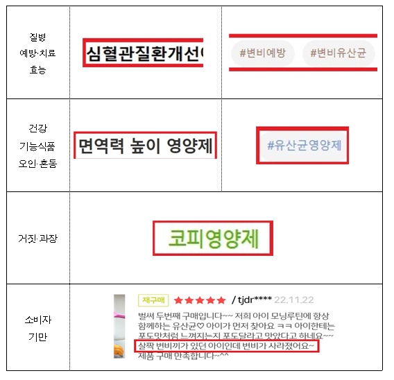 아울러, 건강기능식품 등을 온라인에서 구매하려는 경우 건강기능식품 도안과 ‘~에 도움을 줄 수 있음’과 같은 기능성 내용을 꼼꼼히 확인하고, 검증되지 않은 의학적 효능·효과 등을 내세우는 부당광고에 현혹되지 않도록 주의해야 한다.