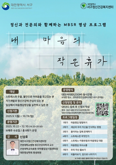 참여는 무료이며, 신청 방법 및 자세한 일정은 대전서구정신건강복지센터 홈페이지 또는 전화로 확인할 수 있다.