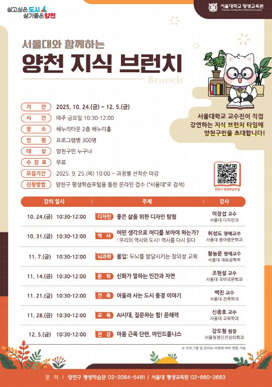 ![]() 양천구, 서울대와 함께하는 '양천지식 브런치' 홍보 포스터 |