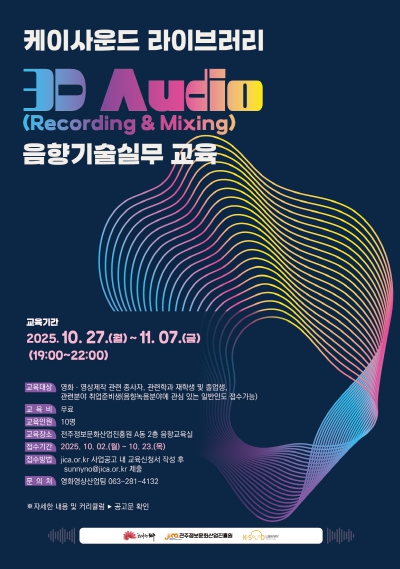 교육은 약 2주간 전주정보문화산업진흥원에서 진행되며, 영화·영상 제작 관계자와 음향 관련 재학생·졸업생, 관련 분야 취업준비생 등 누구나 신청할 수 있다.