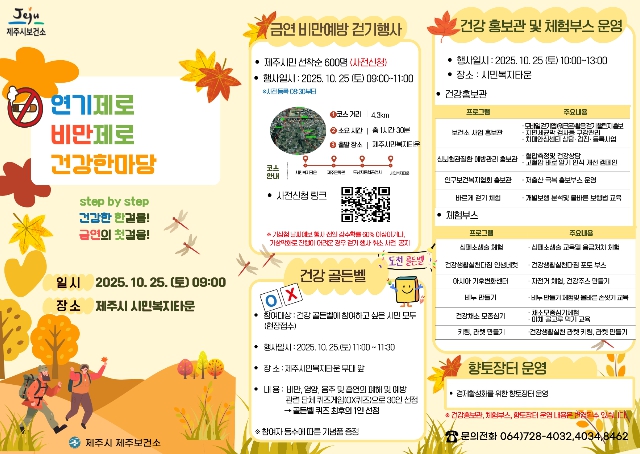신청은 제주보건소 누리집 또는 모바일 앱 ‘워크온’을 통해 가능하며, 사전 접수 기간은 오는 10월 17일까지다.
