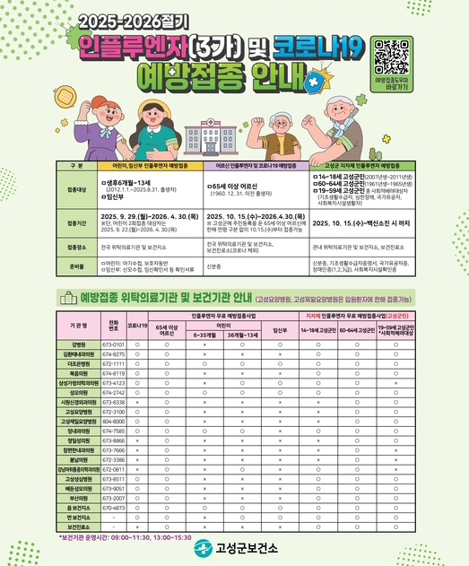 이을희 보건소장은 “예방접종은 자신뿐만 아니라 가족과 이웃의 건강을 지키는 가장 효과적인 방법”이라며, “군민 여러분께서는 가까운 의료기관을 방문해 빠짐없이 접종을 완료해주시길 바란다”라고 당부했다.
