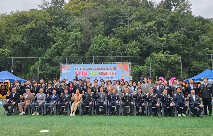 ![]() 대구 수성구자율방범연합대가 가족 및 참석 내빈과 함께 ‘2025 수성구자율방범연합대 한마음 가족 체육대회’ 단체 기념촬영을 하고 있다. |