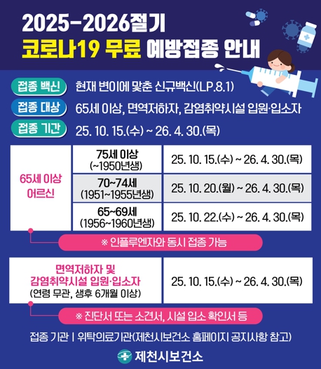 ![]() 제천시, 2025-2026절기 코로나19 예방접종 실시 |