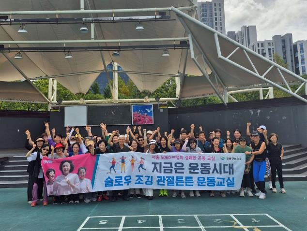 ![]() ‘슬로우 조깅 관절튼튼 운동교실’에 참여하고 있는 강동구민 |
