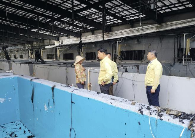 ![]() 보성군 꼬막 등 종묘배양장 화재, 인명 피해 없이 진화 완료_김철우 보성군수가 현장에서 피해 상황을 점검하고 있다. |