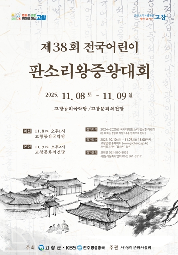 ![]() 고창군, 전국 어린이판소리 왕중왕대회 참가자 모집..11월7일까지 |