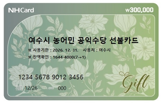 ![]() ‘여수시 농어민 공익수당 선불카드’ 디자인(안) |