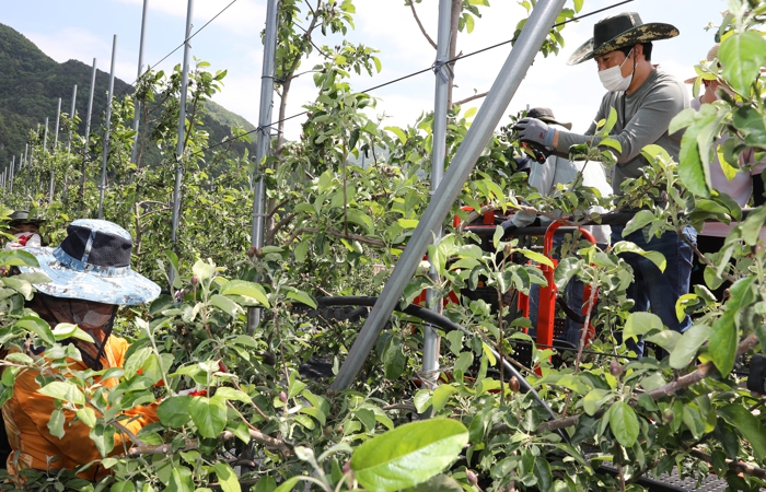 김준회 무주군농업기술센터 기술연구과 소득작목팀장은 “예년에 비해 8월 기온이 떨어지고 비가 자주 내려 사과 크기 등 생육 상황은 다소 개선된 면이 있지만 전체 생산량이라던가 출하량은 소폭 감소할 것으로 예상하고 있다”라며 “1년 내 농사짓느라 고생하는 농가들이 만족할 만한 결실을 얻을 수 있도록 행정에서 할 수 있는 지원에 최선을 다할 것”이라고 밝혔다.