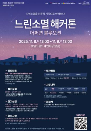 ![]() 담양군문화재단, 청소년 인문 프로그램 '느린소멸 해커톤' 참가팀 모집 |