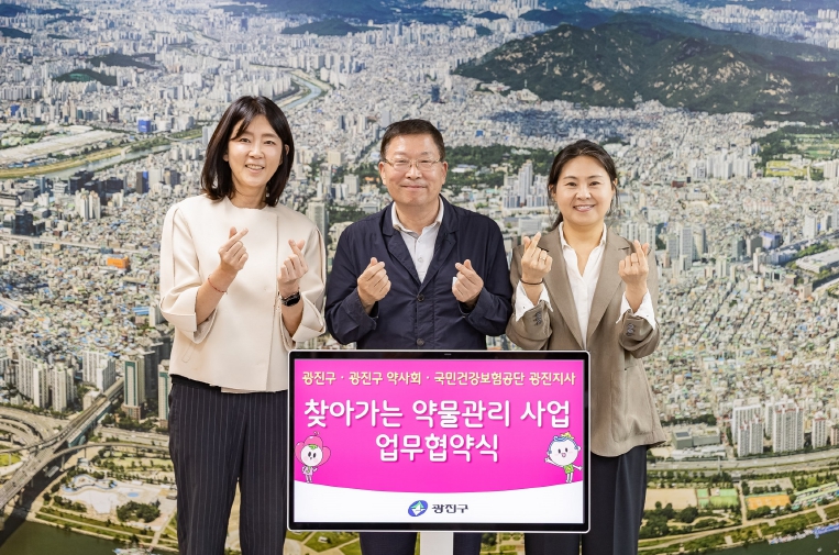 사업의 원활한 추진을 위해 구는 지난 1일 광진구 약사회(회장 한은경), 국민건강보험공단 광진지사(지사장 서윤희)와 업무협약(MOU)을 체결했다. 세 기관은 상호 협력체계를 구축하고, 인적‧물적 자원을 연계하여 사업의 안정적인 운영 기반을 마련하기로 했다.