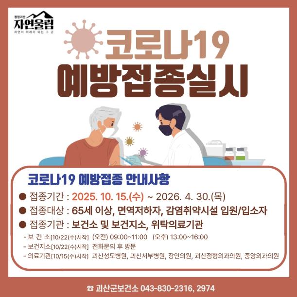![]() 괴산군, 2025-2026절기 코로나19 예방접종 실시 |
