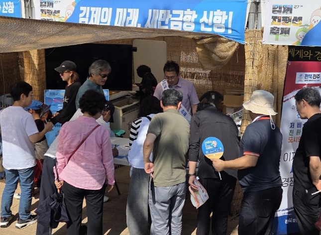 한편, 이번 홍보활동은 축제의 주요 방문객 동선에 설치된 홍보부스를 통해 진행됐으며, 방문 시민들에게는 리플릿과 기념품을 배부하고 새만금신항의 비전과 김제시의 노력을 적극 알리는 계기가 됐다.