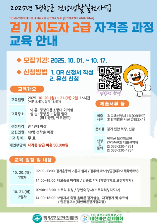 ![]() 걷기 지도자 2급 자격증 과정 교육 안내 포스터 |