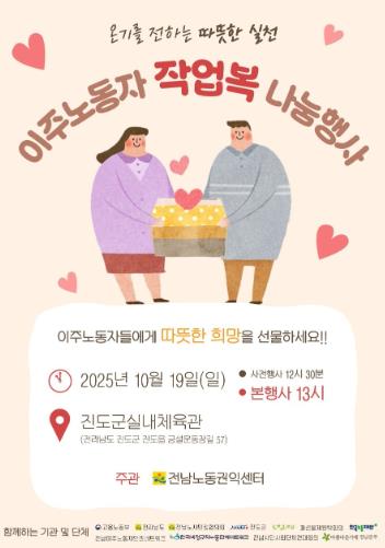 ![]() 진도군-전남노동권익센터, 이주노동자 겨울옷(작업복) 나눔 행사 개최 |