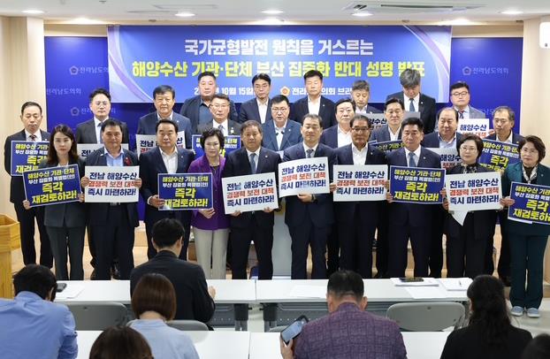 ![]() 최동익 전남도의원, 해양수산 기관·단체 부산 집중화 반대 성명 발표 |