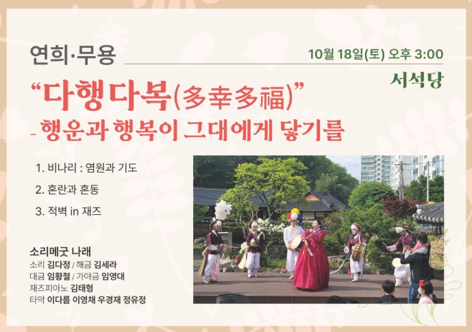 ![]() 10월 18일 토요상설공연 〈다행다복(多幸多福)〉 무대 |