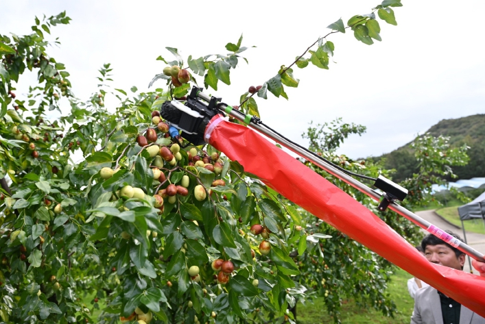 또한, 현재 생대추는 손으로 하나씩 수확해야 해 인력 소모가 많고, 높은 곳의 과실은 사다리 작업 중 낙상 위험이 따른다. 이에 연구소는 전동식 롤러가 회전하며 과실을 감싸 안전하게 분리하는 ‘휴대용 수확기’를 개발 중이다.