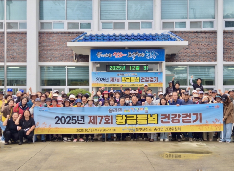 이번 걷기 행사는 송라면 주민들의 걷기 실천을 독려하고 지역 공동체의 화합을 도모하기 위해 마련됐으며, 마을 내 걷기 좋은 길로 조성된 ‘황금들녘길’(왕복 2.4km)을 코스로 2시간 동안 진행됐다.