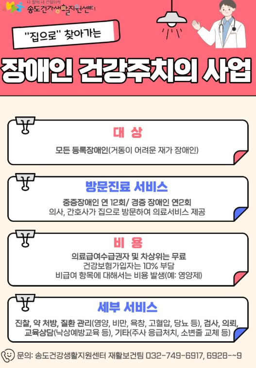 한편, 구는 올해 장애인 34명을 건강주치의와 연계해 보다 편리하게 진료받을 수 있도록 지원했으며, 서비스 이용을 원하는 구민은 송도건강생활지원센터 재활보건팀으로 문의하면 된다.
