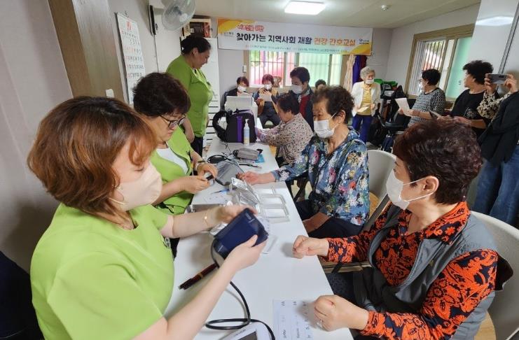 어르신들을 위한 찾아가는 지역사회 재활 건강 간호교실은 ▲ 혈압, 혈당 체크 ▲ 건강상담 ▲ 손위생 검사 및 교육 ▲ 심폐소생술, 하임리히법 교육 으로 진행됐다.