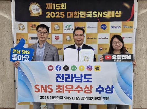 전남도는 지난 7월 ‘소셜아이어워드 2025’에서 광역자치단체 블로그 ‘대상’, 유튜브·인스타그램 ‘최우수상’ 수상에 이어, 이번 대한민국 SNS 대상 ‘최우수상’을 받아 국내 양대 SNS 어워드 수상이라는 쾌거를 이뤘다.