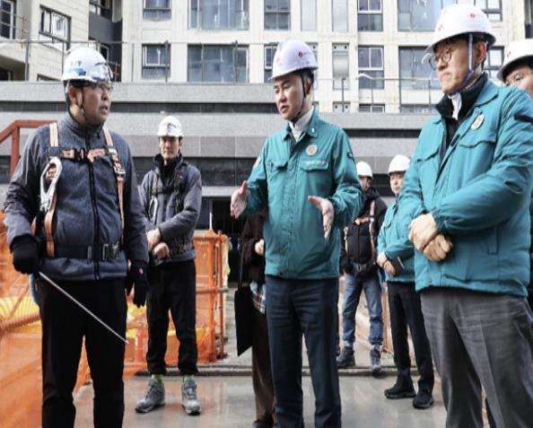 ![]() 오언석 도봉구청장(가운데)이 지역 대형공사장을 찾아 현장 관계자에게 근로자 안전관리 준수 등을 강조하고 있다. |