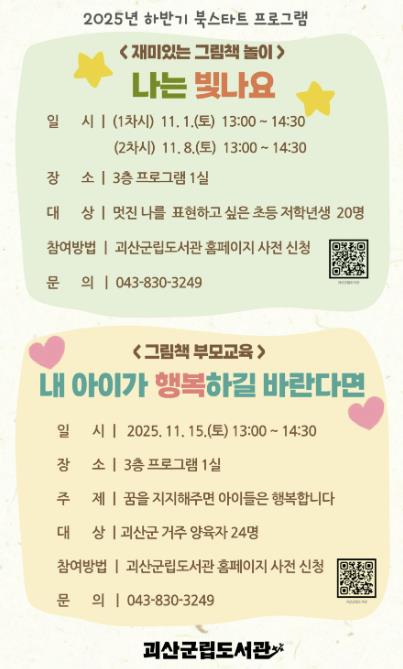 ![]() 괴산군립도서관, ‘하반기 북스타트 프로그램’ 운영 |