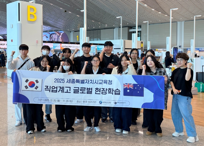 ![]() '2025 세종특별자치시교육청 직업계고 국외 현장학습' 호주로 국외 현장학습 출국 전 학생들 |