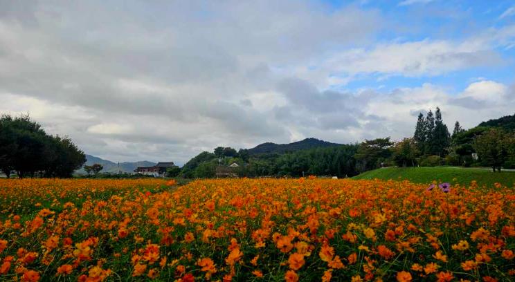 마을 초입을 수놓은 황금빛 코스모스는 가을 정취와 전통마을의 풍경을 조화롭게 담아내며, 2025 APEC 정상회의를 맞아 경주를 찾는 방문객들에게 특별한 감동을 선사할 것으로 기대된다.