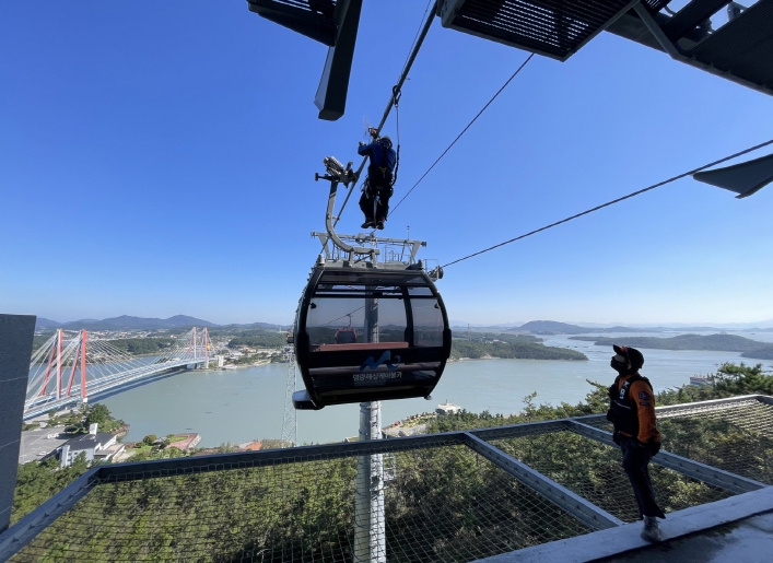 이번 훈련은 케이블카로 많은 가족단위 여행객들이 방문하는 시기에 비상상황 발생 시 현장 대응 능력 강화 및 안전한 케이블카 운영을 위해서 실시하게 됐는데, 케이블카 운행 중 정전이나 천재지변, 기계 이상 등으로 관광객이 탑승한 케빈이 공중에 멈춰 서는 상황을 실제와 동일하게 재현하여 즉각적인 초동조치 및 케이블카 현장직원들의 각 상황 전파와 현장에서의 직접적인 구조와 대피 절차가 민관 협조 체계 아래서 얼마나 빠르게 작동하는지를 중점적으로 점검했다.