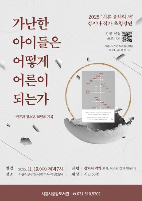 강연은 시민 누구나 참여할 수 있으며, 신청은 10월 24일 오전 10시부터 시흥시 중앙도서관 누리집 문화마당에서 선착순으로 진행된다. 관련 문의는 도서관정책팀으로 하면 된다.