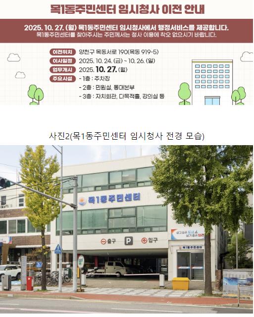 ![]() 목1동주민센터 임시청사 이전 안내문 |