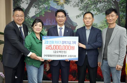 ![]() 일일선인성운동본부 고창지회, 지역인재육성 장학금 500만원 기탁 |