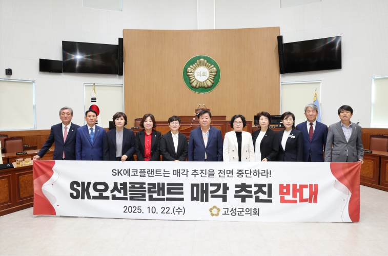 최을석 의장은 “국내 대기업인 SK그룹이 지역사회와의 충분한 협의 없이 일방적으로 매각을 추진하는 것은 고성군민의 신뢰와 기대를 정면으로 저버린 무책임한 행위”라며 “이번 매각은 고성지역 경제와 고용 안정에 중대한 영향을 미칠 수 있는 사안인 만큼, SK그룹은 즉각 매각 절차를 중단하고 책임 있는 대책 마련에 나서야 한다”고 강력히 촉구했다.