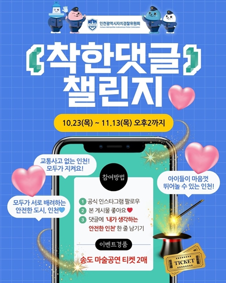 ![]() 인천시, 자치경찰과 함께하는 착한 댓글 챌린지 진행 |