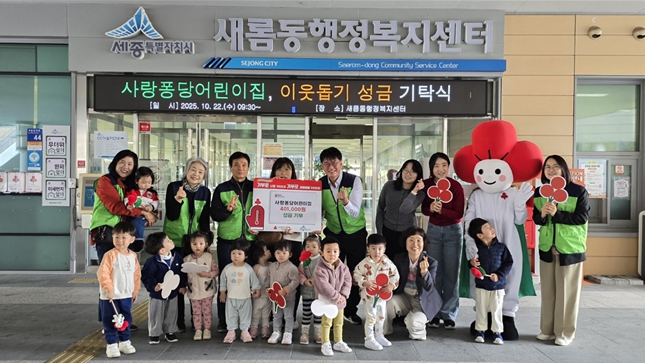 ![]() 세종시 새롬동에 위치한 사랑퐁당 어린이집이 지난 22일 새롬동지역사회보장협의체(공동위원장 강신우·김지원)를 통해 세종사회복지공동모금회(회장 박상혁)에 아나바다 수익금 40만 1000원을 지역 내 저소득 가정 아동복지 지원을 위해 기부했다. |