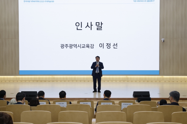 ![]() 이정선 광주시교육감이 24일 전남대 컨벤션센터에서 진행한 ‘2025 한국아동가족복지학회 추계학술대회’에서 인사말을 하고 있다. / 광주시교육청 제공 |