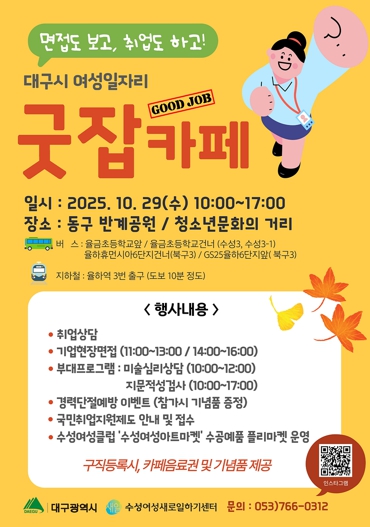 당일 현장 방문이 어렵다면 남부여성새로일하기센터, 수성여성새로일하기센터로 문의해 맞춤형 직업상담과 취업 연계, 취업 후 사후관리 서비스도 지원받을 수 있다.