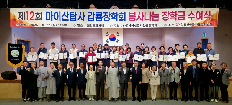 지난 1994년 설립된 마이산탑사갑룡장학회는 꾸준히 지역 청소년의 학업을 지원해왔으며, 최근에는 (사)진안군자원봉사센터와 협력해 자원봉사자의 자녀에게 장학금을 수여하는 등 나눔문화 확산에 앞장서고 있다. 이날 행사에는 진성 스님(갑룡장학회 이사장)을 비롯해 전춘성 진안군수, 동창옥 진안군의회 의장, 전용태 전북특별자치도의회 의원, 현진 스님(사단법인 붓다 총괄이사), 윤금상 마이산탑사 전국신도회장, 이재현 붓다봉사단장 등 내빈과 장학생 가족 등 100여명이 참석해 자리를 빛냈다.