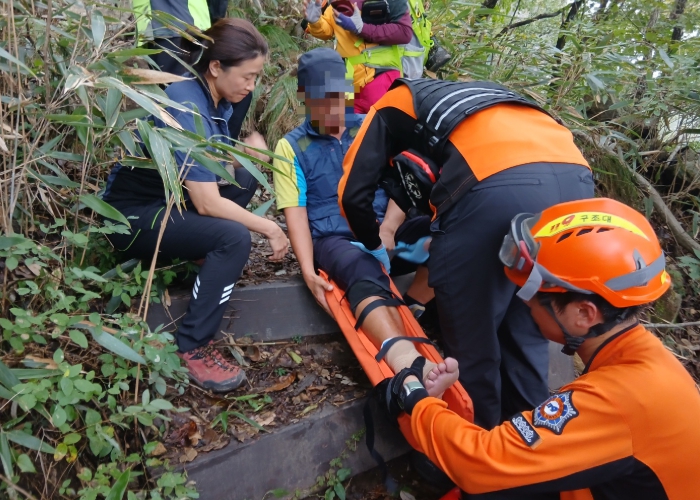 산행 중 부상이나 길을 잃는 등 위급 상황이 발생하면 이동을 멈추고 주변 산악위치표지판 번호를 확인해 기억하고, 휴대전화 위치 공유 기능을 활용해 즉시 119에 신고하면 정확한 위치 파악과 신속한 구조에 도움이 된다.