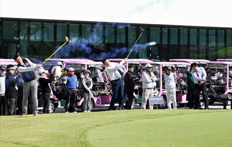 ![]() - 27일 단장면 에스파크컨트리클럽에서 열린 제30회 밀양시장배 시민골프대회에서 내빈들이 시타를 하고 있다. |