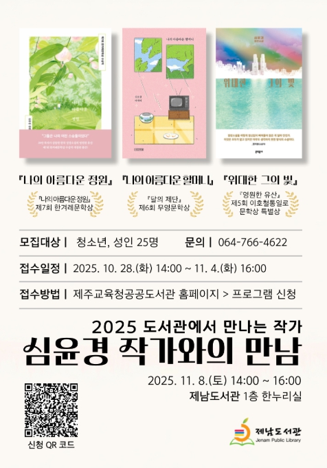 ![]() ‘2025 도서관에서 만나는 작가–심윤경 작가와의 만남’ 프로그램 안내문 |
