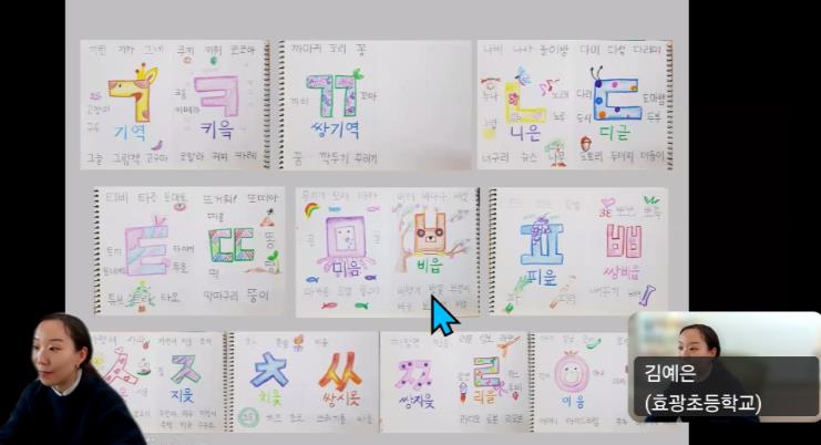 ![]() 김예은 효광초 교사가 28일 온라인을 통해 일본 오사카 소재 한글학교 교사들에게 한국어 지도법을 설명하고 있다. |