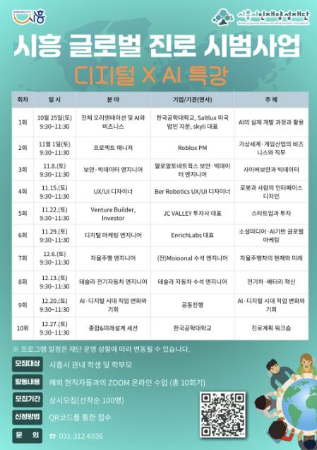 이번 사업은 시흥시 청소년의 글로벌 역량을 강화하기 위한 시범 프로그램ㅡ로, 글로벌 전문가와 함께 인공지능(AI), 자율주행, 빅데이터 등 첨단기술 사례를 학습하며 미래 산업에 대한 이해를 넓히고 진로 탐색의 기회를 제공한다.