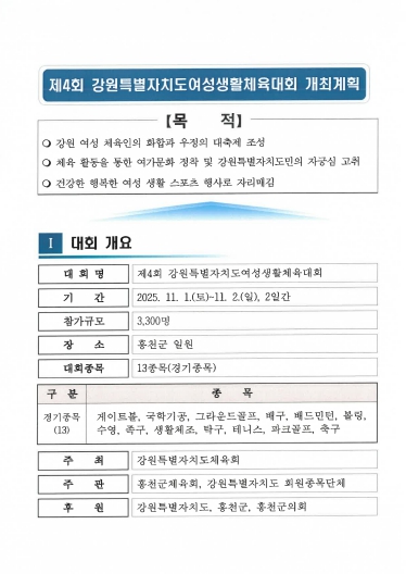 ![]() 강원특별자치도여성 생활체육대회 개최 및 세부추진계획 |